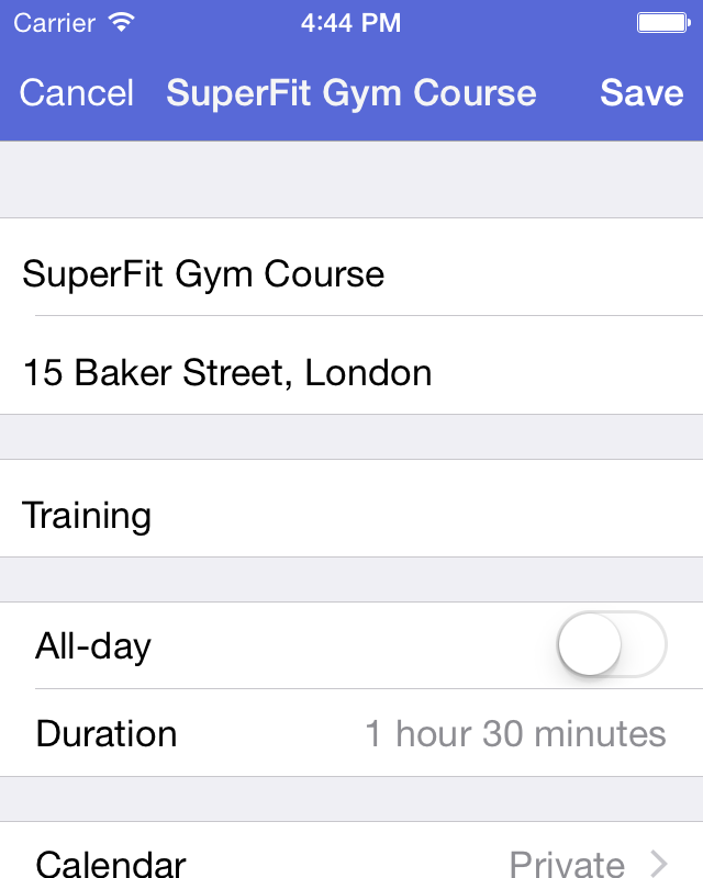 Events are put into your iPhone or iPod Touch calendar and behave like any other event!